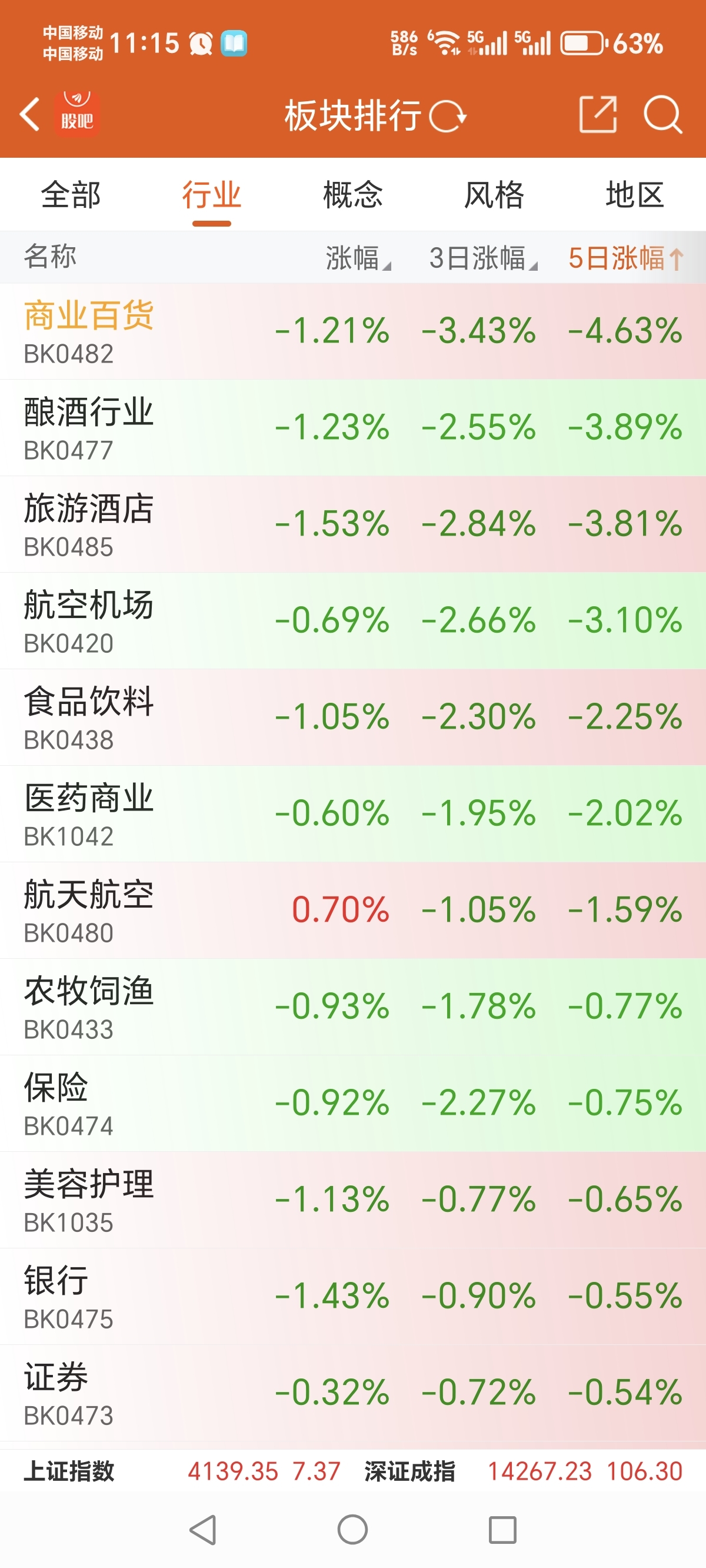 三日跌幅/五日跌幅,商业百货都是全市场倒数第一。。。