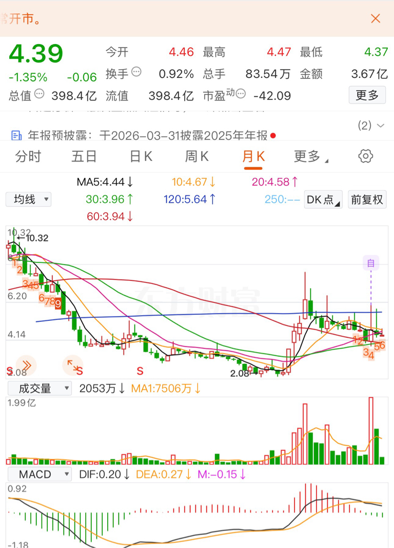 $永辉超市(SH601933)$ 月线下跌6,月线macd绿柱越来越大,下跌趋势没啥机会的票。我换到了低位AI,这个CEO也不靠谱公司能靠谱吗,道歉有用要jc干嘛