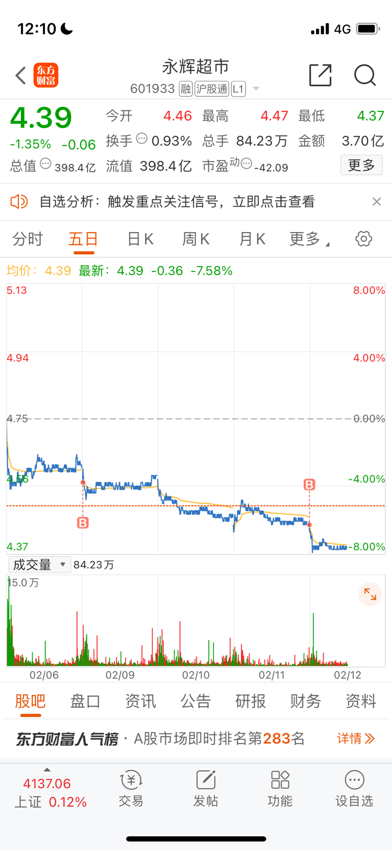 $永辉超市(SH601933)$ 退市我都不怕,我还怕你阴跌?