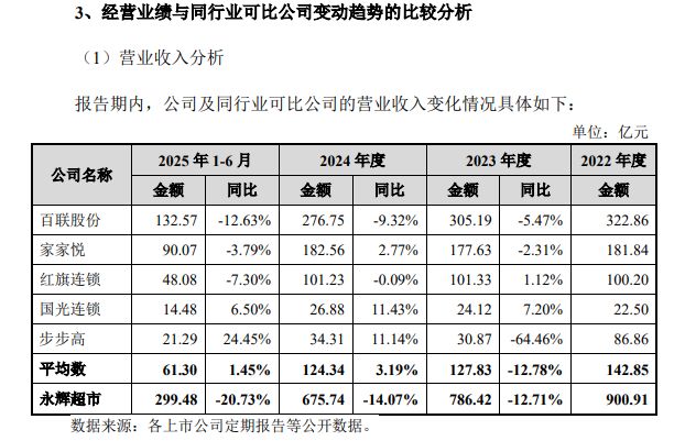 同行方面,永辉超市列举了步步高的转型成果,2025年上半年,步步高超市通过逐步关闭低效门店、调改潜力门店,开展自有品牌战略,整体经营业绩较上年同期改善。报告期内,公司实现营收21.29亿元,同比增长24.45%,归母净利润为2.01亿元,同比增长357.71%。