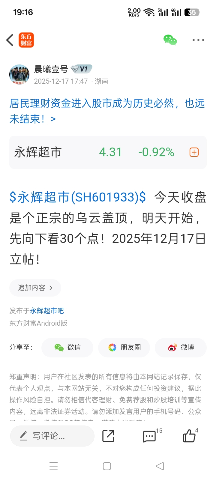 温馨提示: 1.根据《证券法》规定,禁止编造、传播虚假信息或者误导性信息,扰乱证券市场;2.用户在本社区发表的所有资料、言论等仅代表个人观点,与本网站立场无关,不对您构成任何投资建议。用户应基于自己的独立判断,自行决定证券投资并承担相应风险。《东方财富社区管理规定》