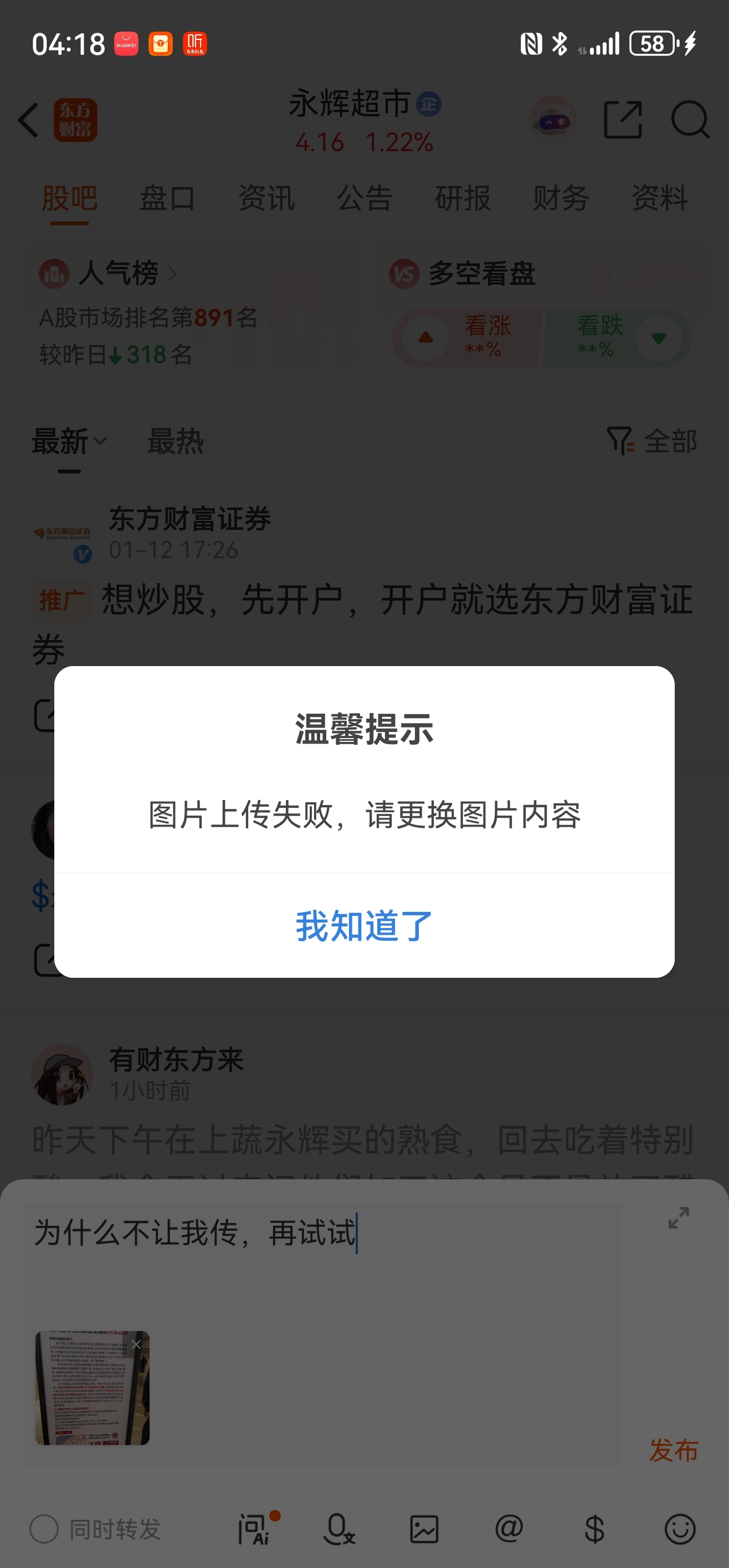 温馨提示: 1.根据《证券法》规定,禁止编造、传播虚假信息或者误导性信息,扰乱证券市场;2.用户在本社区发表的所有资料、言论等仅代表个人观点,与本网站立场无关,不对您构成任何投资建议。用户应基于自己的独立判断,自行决定证券投资并承担相应风险。《东方财富社区管理规定》