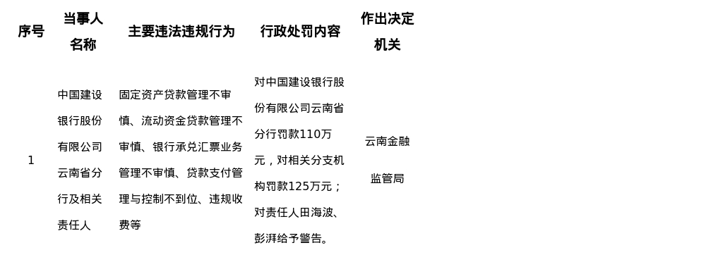建行云南省分行及分支机构共被罚235万,涉多项违规行为