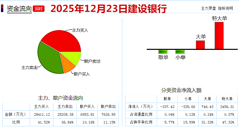 大中华建设金融强国主赛道2025年12月23日国有四大银行资金流向!