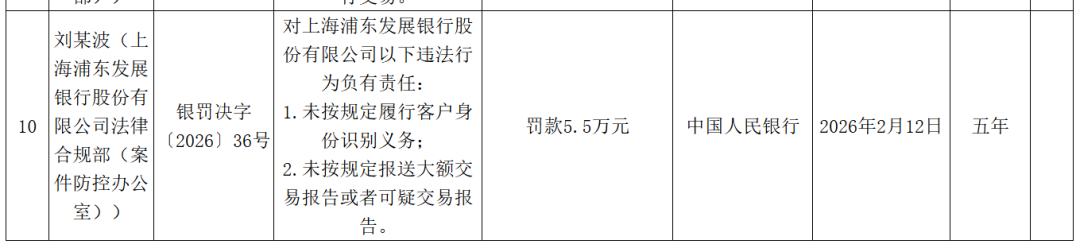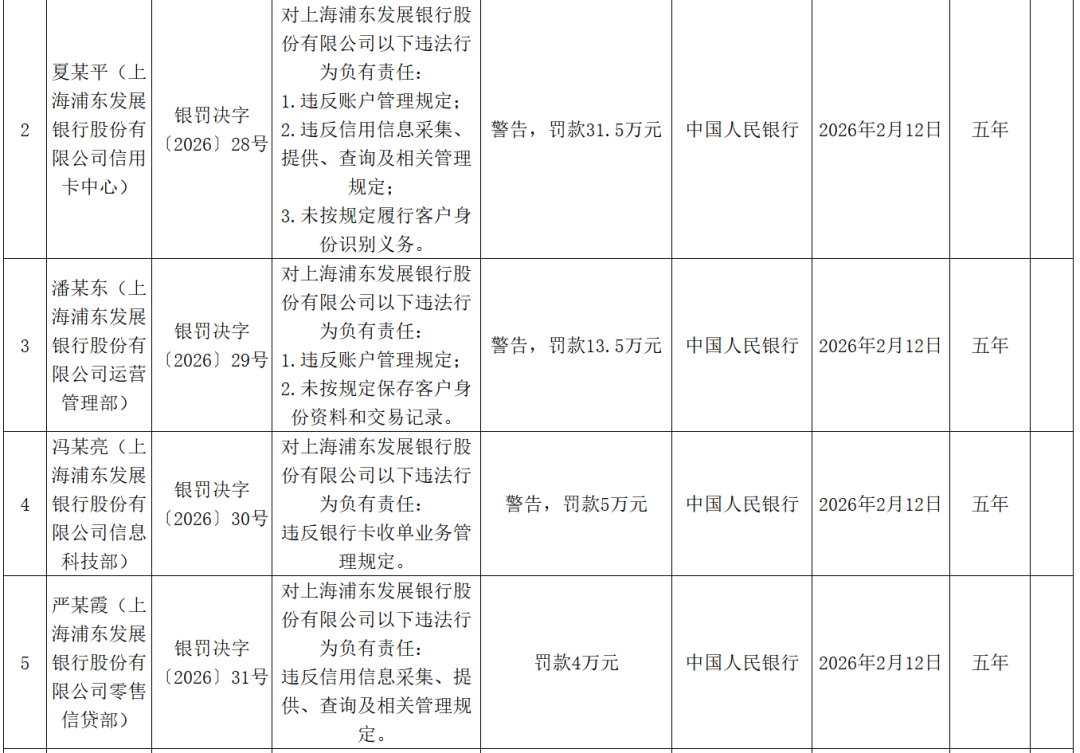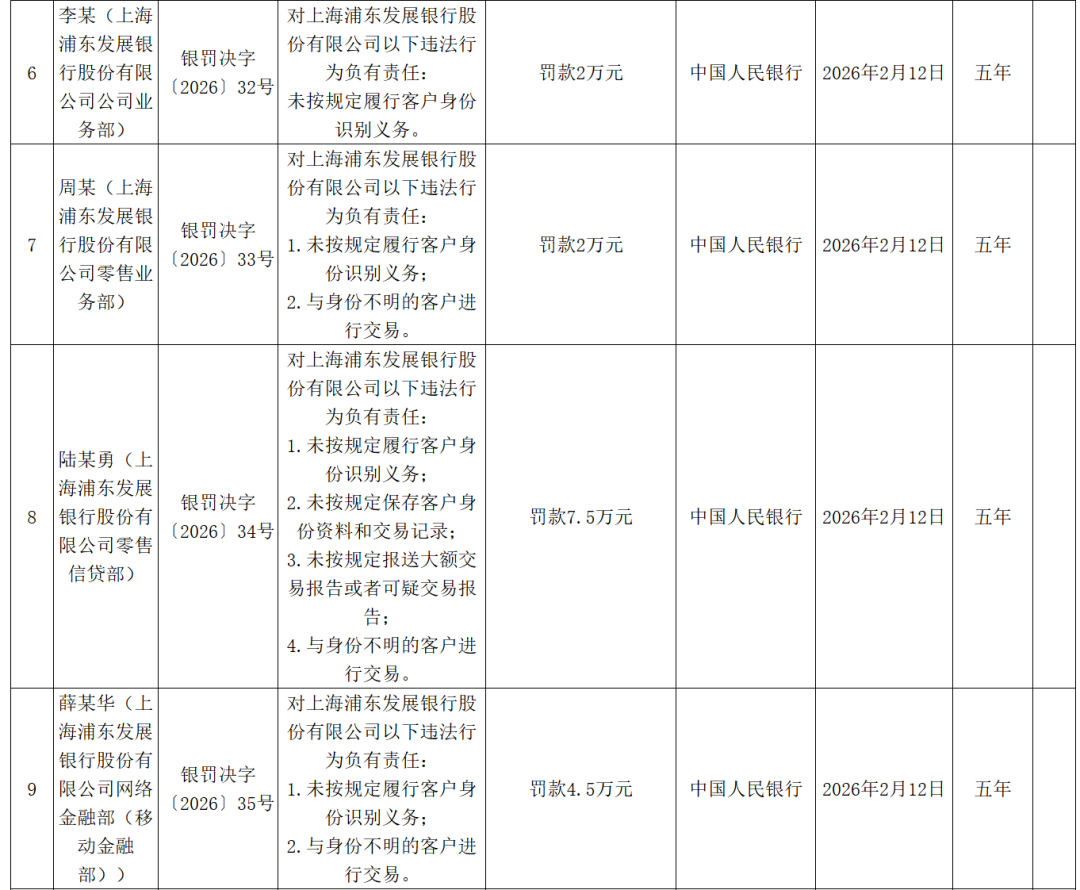 此外,浦发银行9名责任人共计被罚75.5万元。