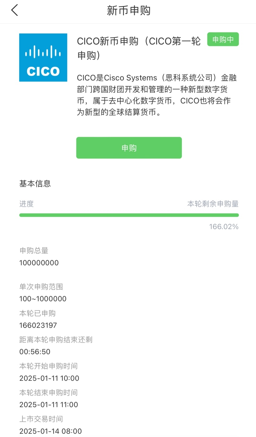 新币CICO不管账户是否有资金,可以输入任意数申购,中签才算,可以多次申购,没有 钱也可以申购,有钱申购中签率高点,不明白的私信我哈!
