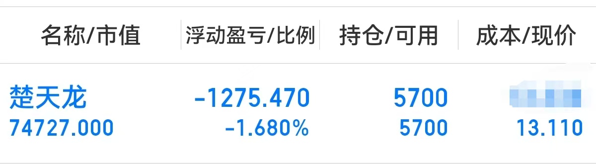 楚天龙继续格局两天,但已出现浮亏,趋势有些小破位,不能及时收复的话,将了结出局。
