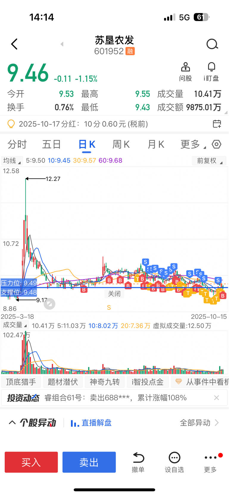 春暖花开总有时,没想到买了那么久苏垦农发。做t18次,降低成本2731块