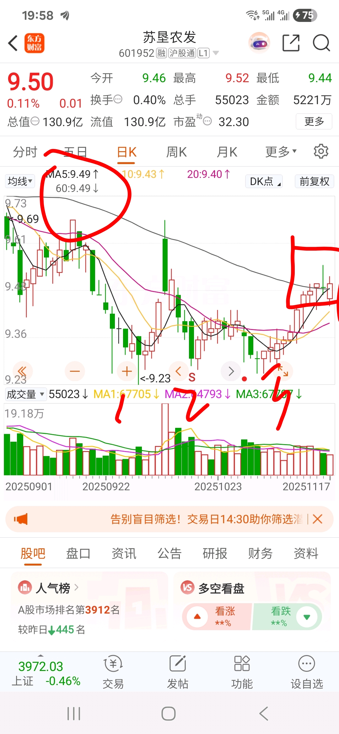 $苏垦农发(SH601952)$ 连续三天站上60均线反转有效,明天摸10元进去2.0