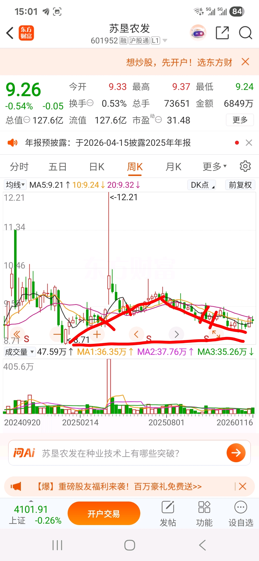 $苏垦农发(SH601952)$ 真有耐心又盘了一周等边三角,变盘在即 春暖花开