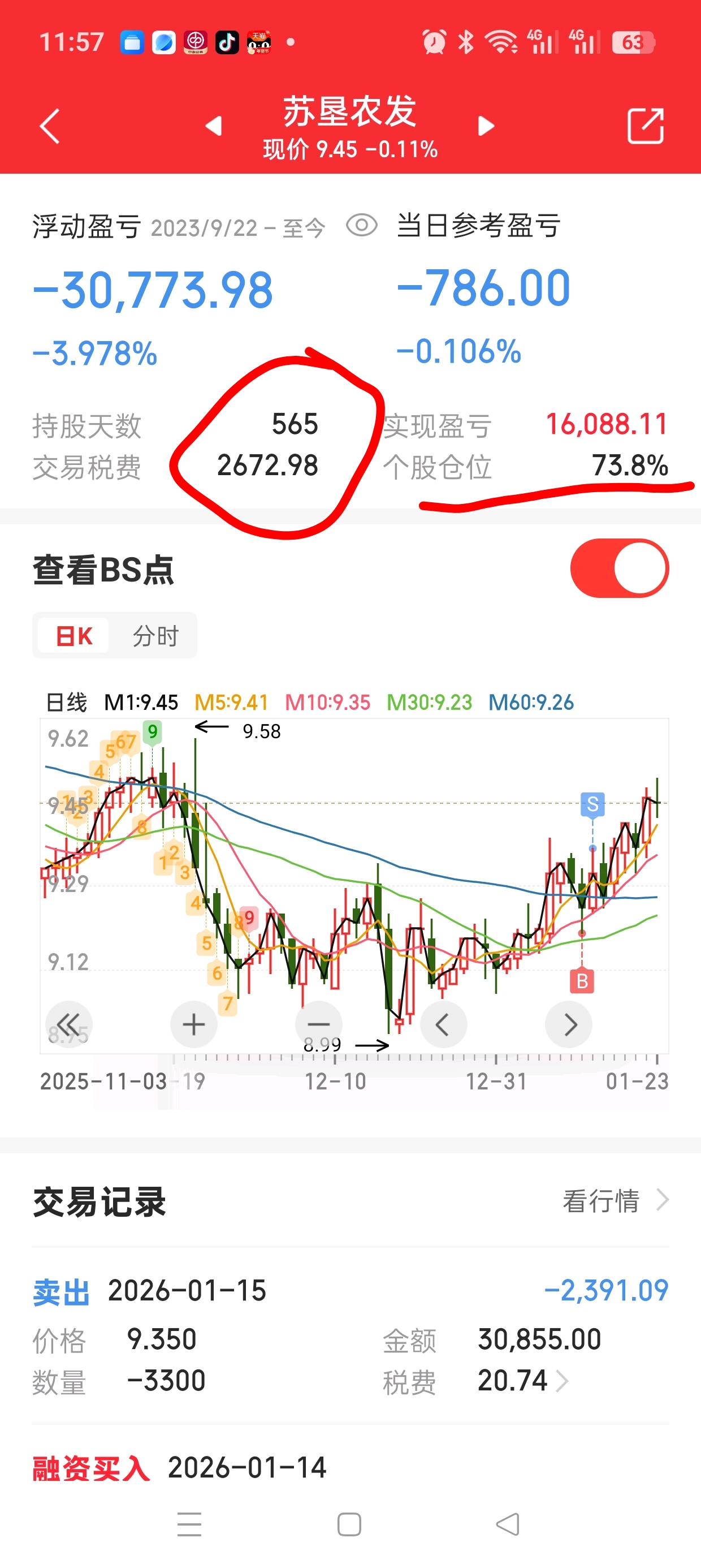 $苏垦农发(SH601952)$ 持仓两年多了躲过了牛市不说,算上分红还亏损。