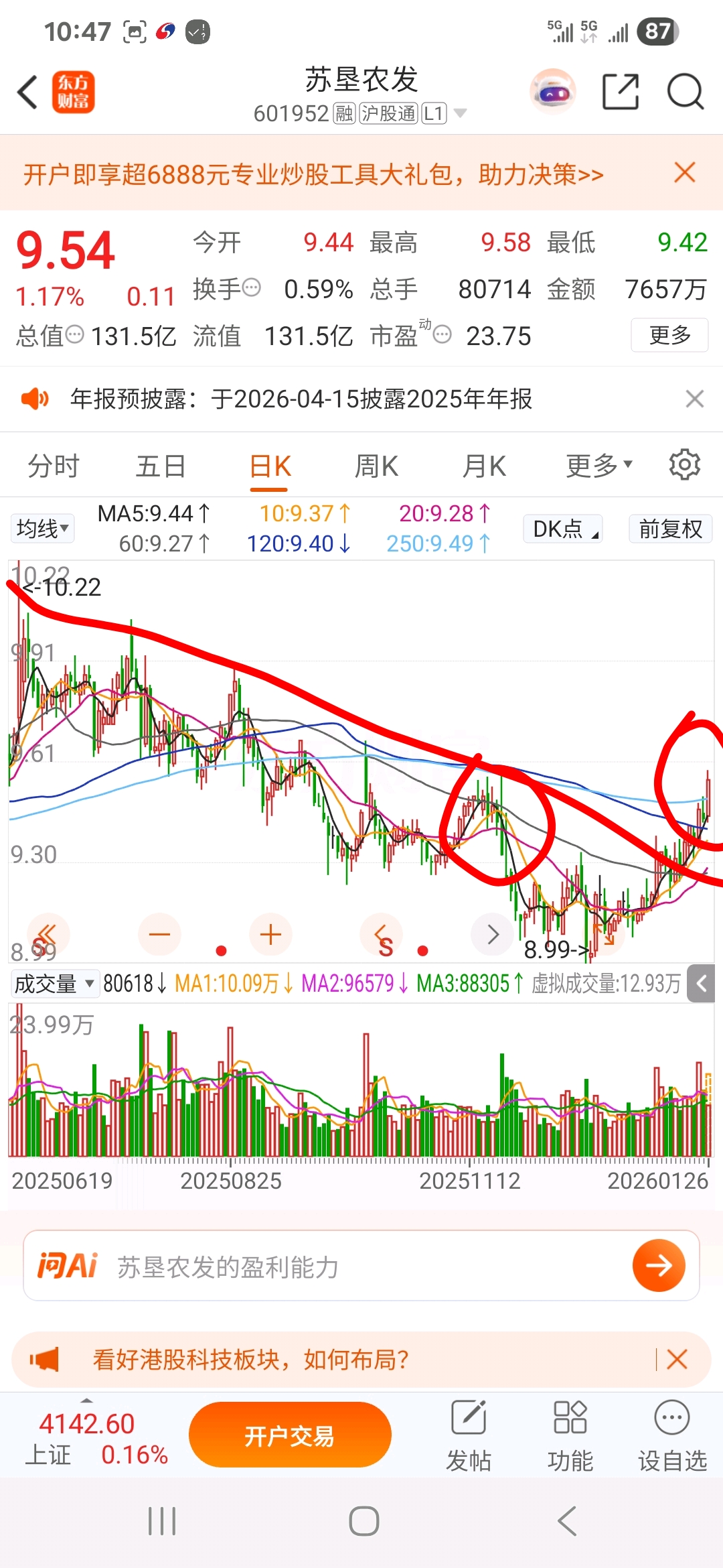 $苏垦农发(SH601952)$ 打掉了!!!!!
