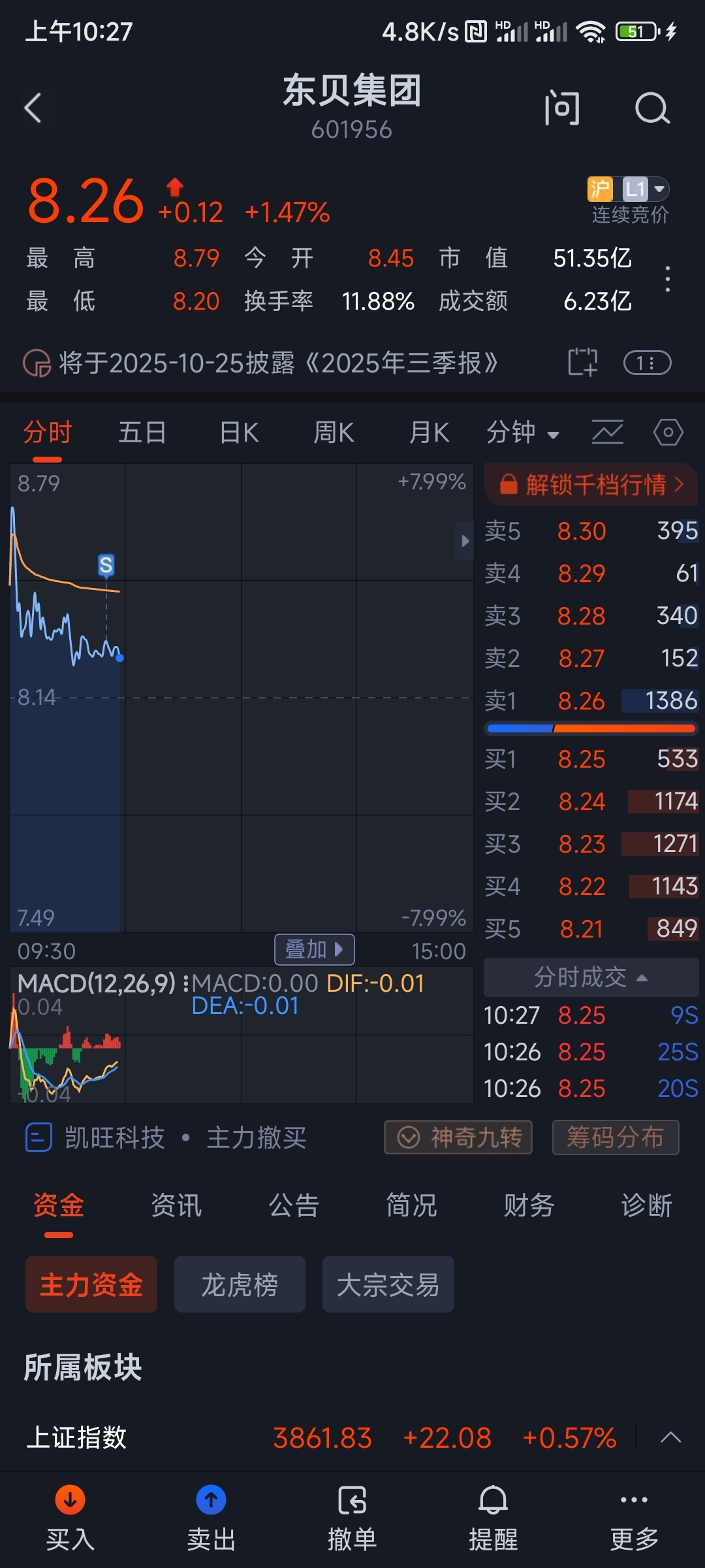 基本面没太大问题,就是不沾任何题材,不跟任何板块走势,阴跌不止4年多。数次建仓后的成本是8.23,后面几年这土立土及货发了比银行利息还低的分红,成本减至7.74。今天本想涨停板8.94出货,奈何这货属实土立土及,8.3全仓清了,终于解脱,这九头鸟公司是真的晦气。