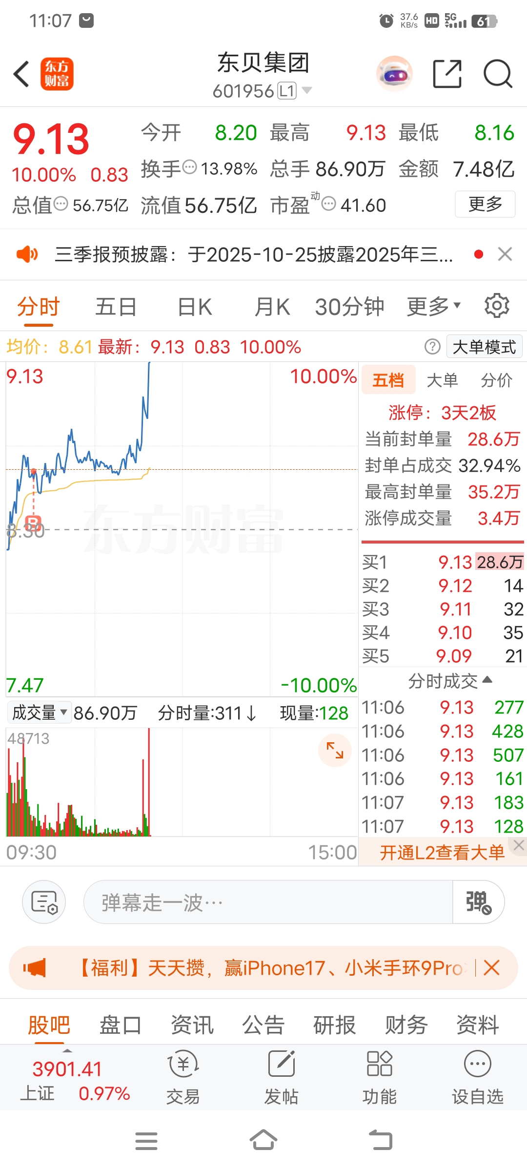 $东贝集团(SH601956)$ 炸板不炸板,不知道,先发个股友圈