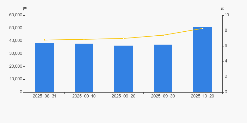 2025年8月31日至今,公司股东户数显著增长,区间涨幅为32.58%。2025年8月31日至2025年10月20日区间股价上涨22.24%。