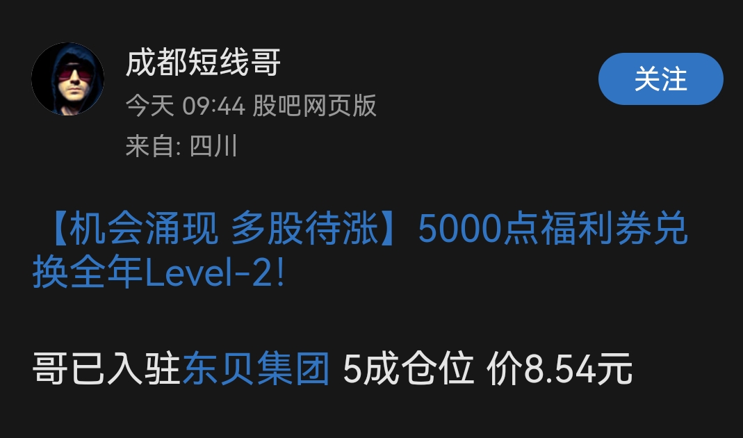 温馨提示: 1.根据《证券法》规定,禁止编造、传播虚假信息或者误导性信息,扰乱证券市场;2.用户在本社区发表的所有资料、言论等仅代表个人观点,与本网站立场无关,不对您构成任何投资建议。用户应基于自己的独立判断,自行决定证券投资并承担相应风险。《东方财富社区管理规定》