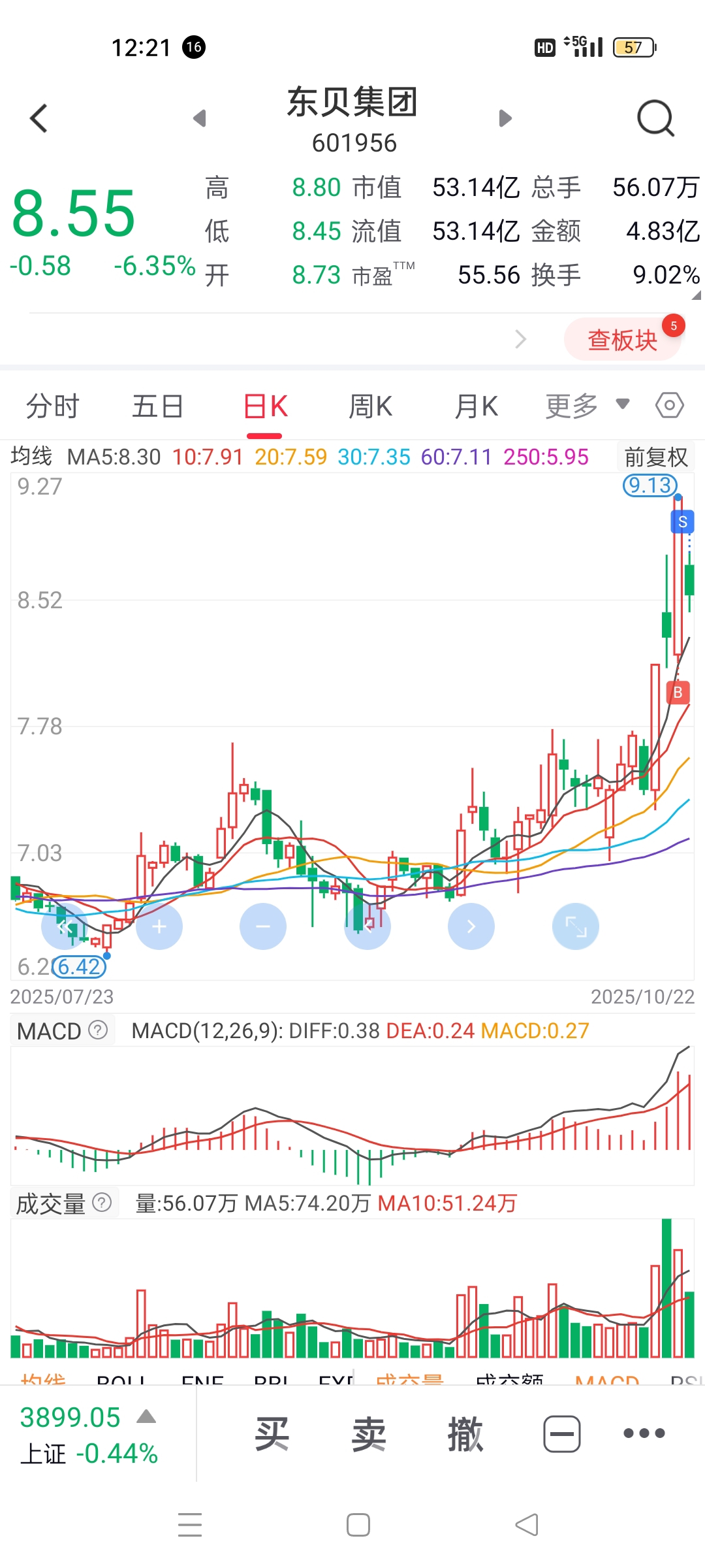 $东贝集团(SH601956)$ 小手一抖6个点到手