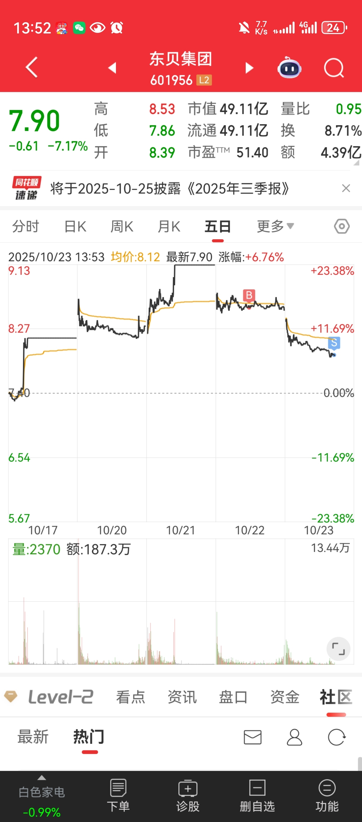 $东贝集团(SH601956)$ 我不知道割肉疼吗,就怕明天还在-5下面。