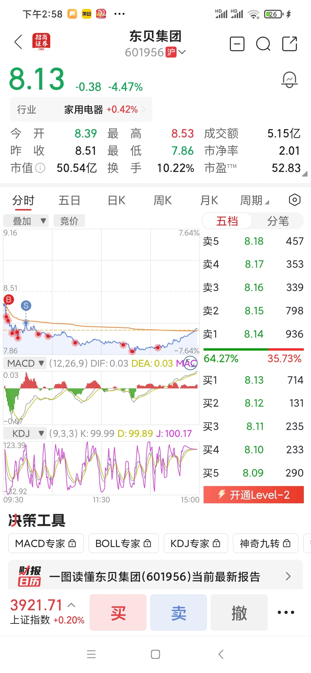 $东贝集团(SH601956)$ 明天有肉吃,一路跌,一路买,还收在了我成本线上面