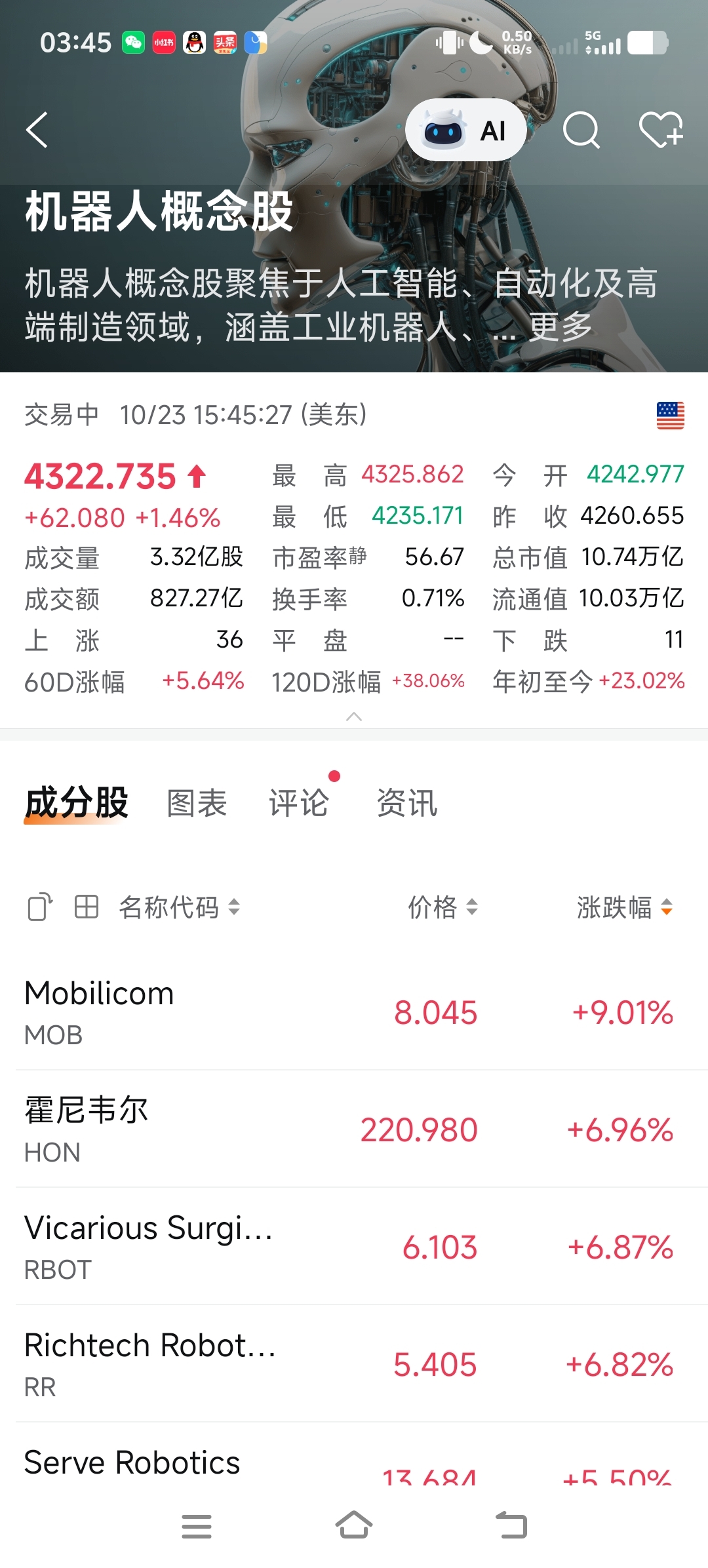 美股机器人大涨,所以今天至少5个点以上大阳线