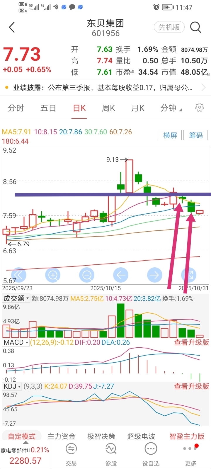 $东贝集团(SH601956)$ 一哥观点:所谓的箱体运动震荡,是不可以破边界价格的,缩小看已经破位三天,且缩量下跌还得跌。主力如果向上运动不会跌破自己建仓的起爆点的,因为一个突破是需要花费很多筹码金钱的,三天都没赎回来,说明主力已经无心做多,股价会顺势回落箱体再破位下跌的。前期的拉升就是游资参与,并非主力动作,在业绩前拉升赚快钱业绩出来一看不及预期没有增长拍拍屁股走人,赚一波快钱。