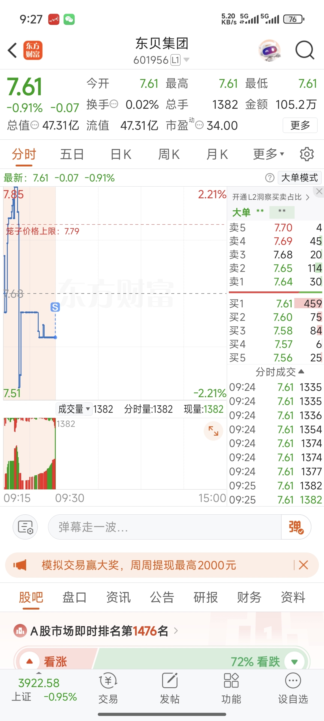 $东贝集团(SH601956)$ 各位我先跑了外面快跌熔断了
