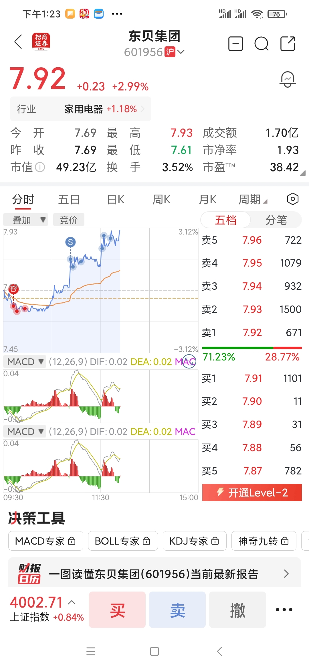 $东贝集团(SH601956)$ 成本8块多,干到7.65了 涨跌随意了