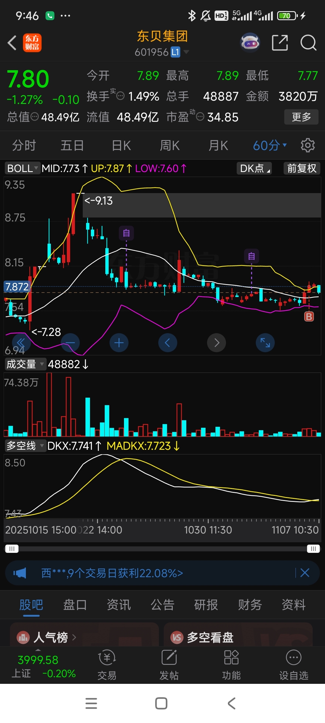 60分钟金叉形成,日线也开始试探布林线中轨,我就是不下车