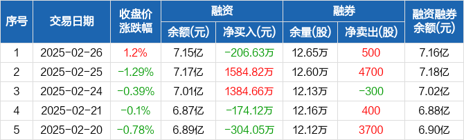金钼股份:融资净偿还206.63万元,融资余额7.15亿元(02-26)