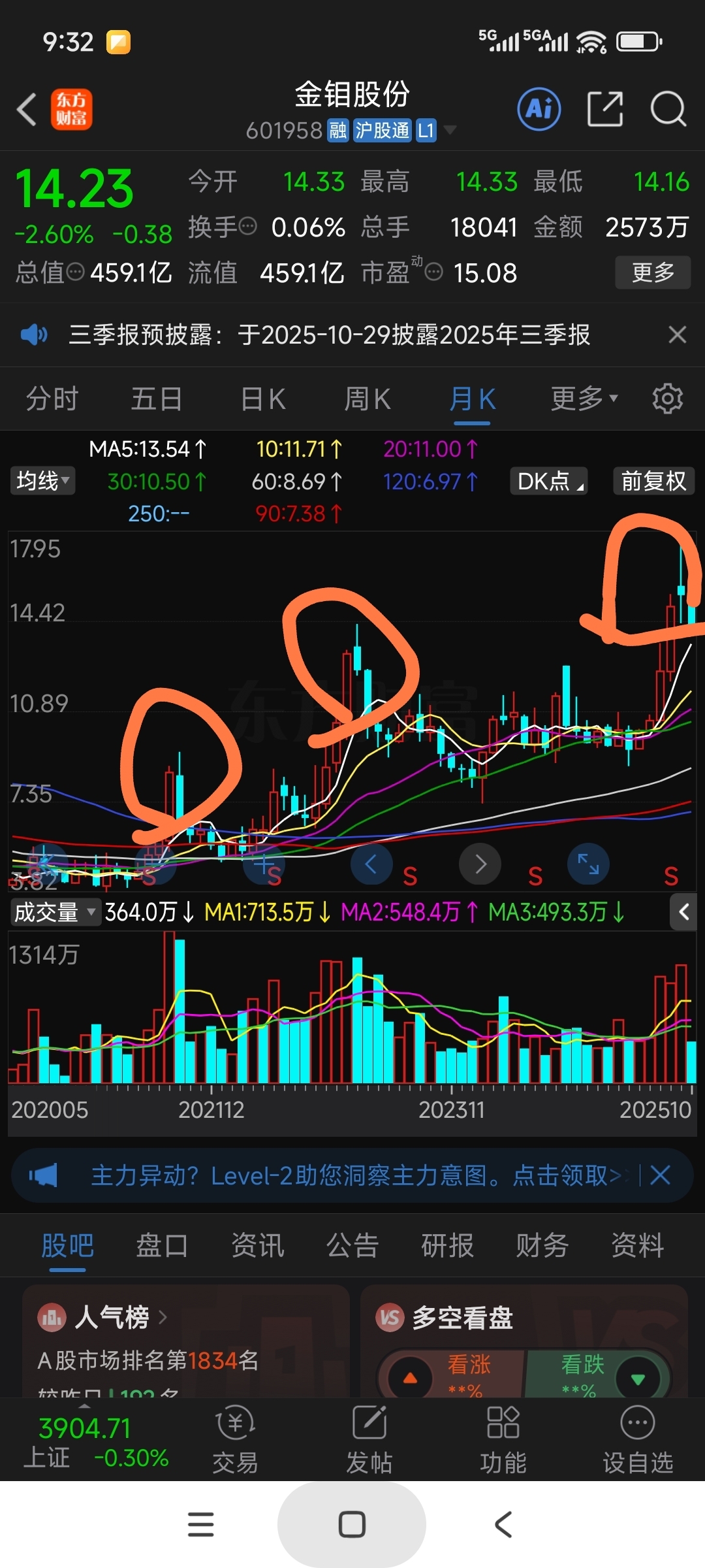 $金钼股份(SH601958)$ 已经完全破位,这时候任何角度给散户加油打气的都没安好心