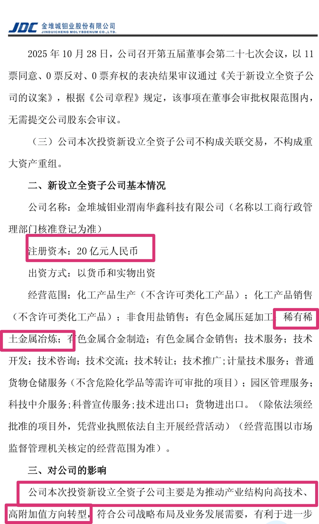 金钼股份豪掷20亿向高技术高附加值:稀有稀土冶炼