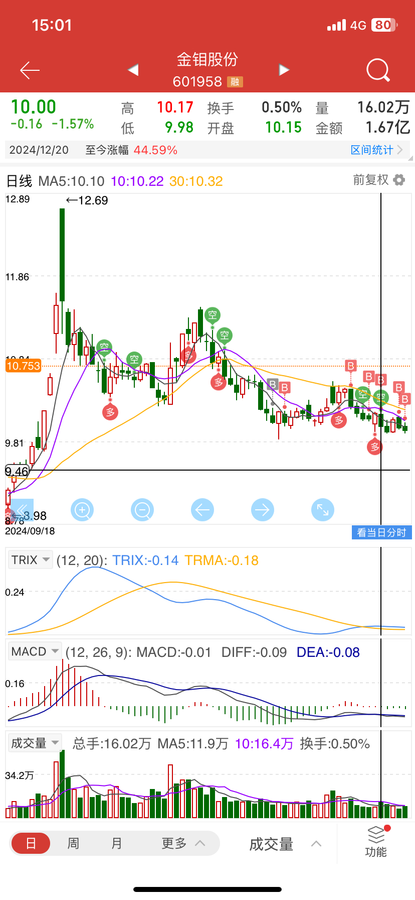 $金钼股份(SH601958)$ 这个走势和去年缩量下跌一样