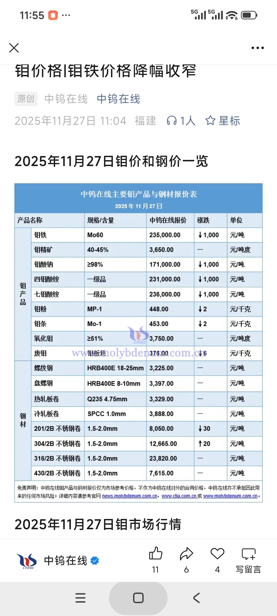 $金钼股份(SH601958)$ 钼价持续阴跌