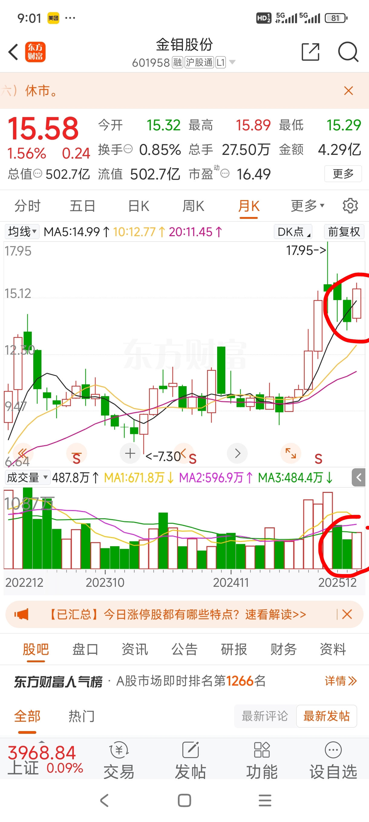 放量创17.95新高后,十月、十一月缩量回调,进场主力未出而融资盘跑光光,十二月缩量上涨很正常,破17.95新高也用不了多少量,前几周发文美元和钼价是假摔,如果钼价开始强势向上突破,春节前便可破30,毕竟小韭都跑光了,只剩满屏主力在笑