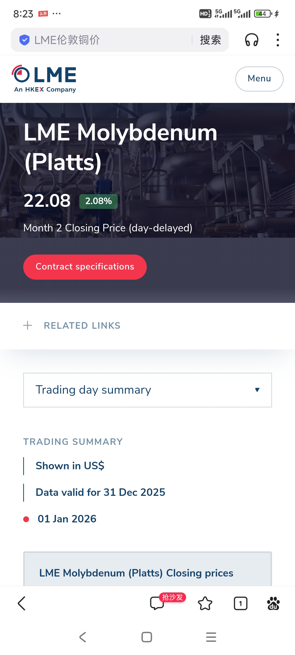 元月一日国际钼大涨2%