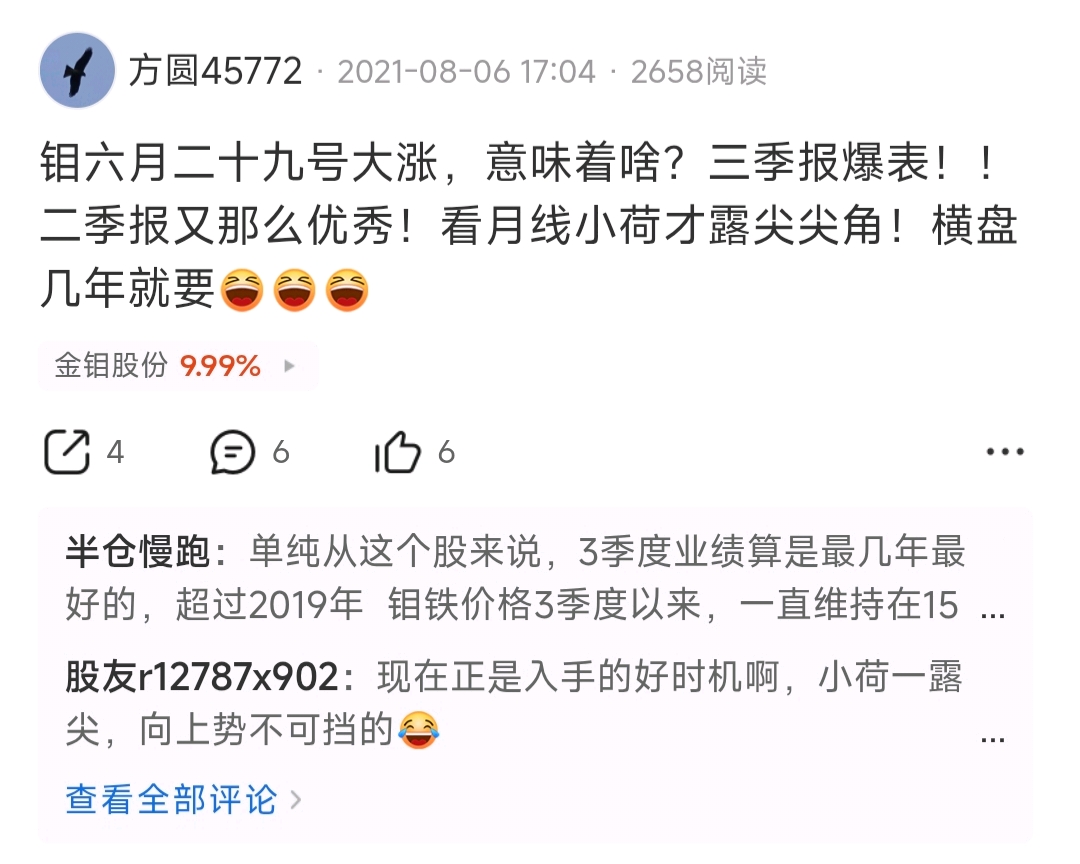 $金钼股份(SH601958)$ 坚守四五年,终于兑现了我当年的期望!投资难不难?很难!经过无数次起伏,喜悦与怀疑!投资容易不容易?其实也很容易,无非就是坚定信念,耐得住寂寞。不知道吧里老人还有多少, 38拉黑而去,还有好些已记忆模糊……几年一起见证经历的老友记得回帖冒泡哦。越来越明白,所有的伟大都是熬出来的!2026钼粉们一起共勉,见证伟大!
