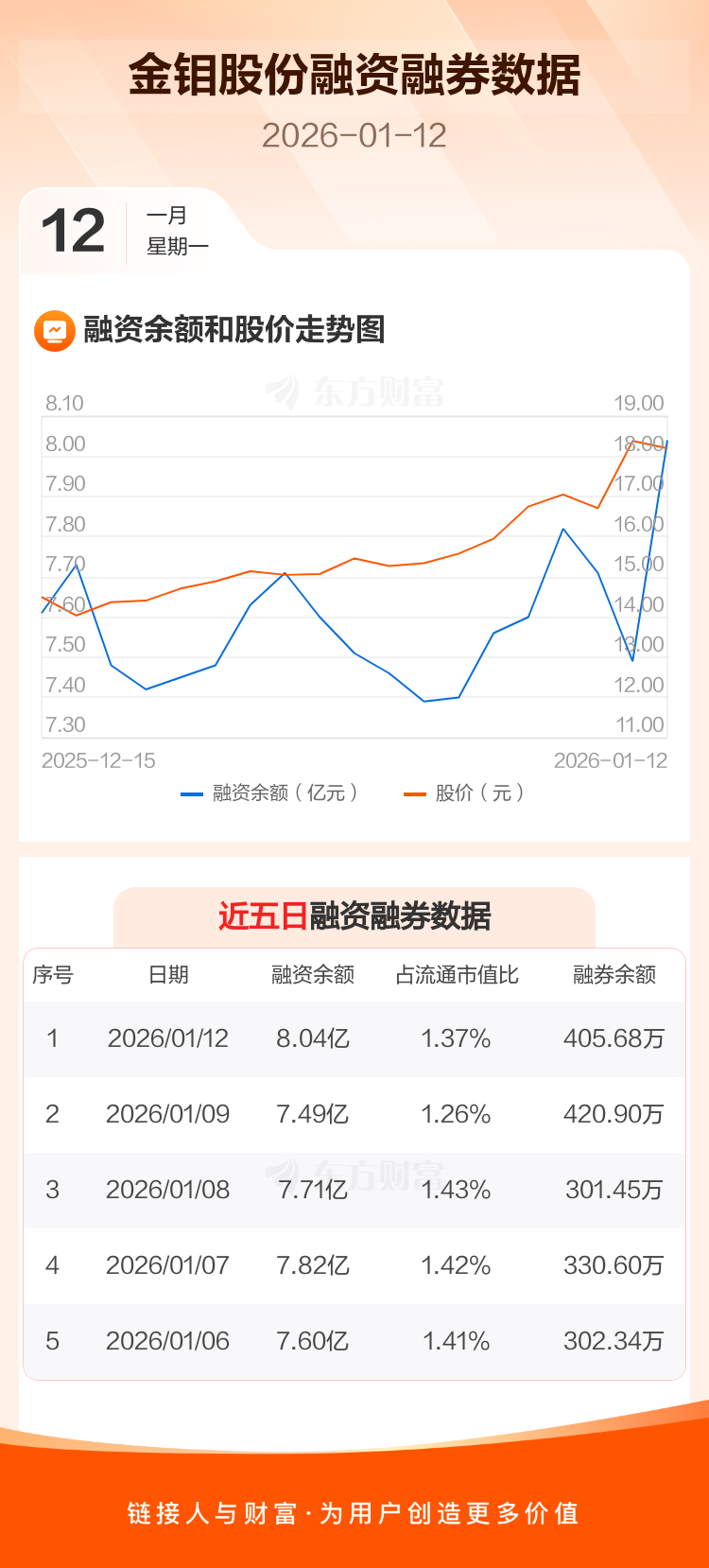 交易所最新数据显示,金钼股份于2026年1月12日获融资买入1.43亿元,融资偿还8757.39万元,当日融资净买入5574.89万元。目前,该股融资余额8.04亿,占流通市值比例为1.37%。
