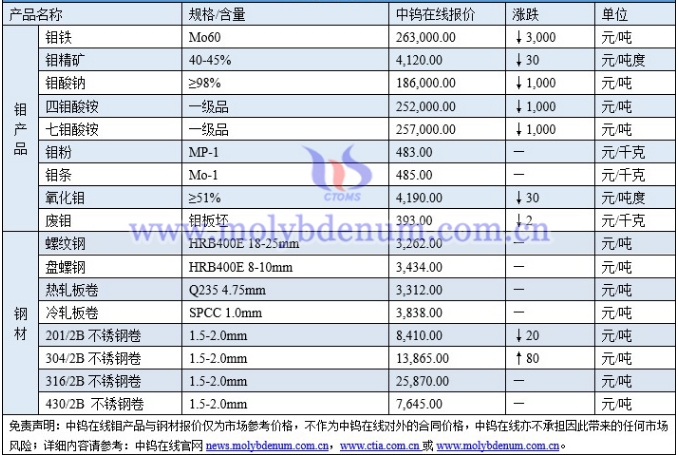 13日钼市场行情