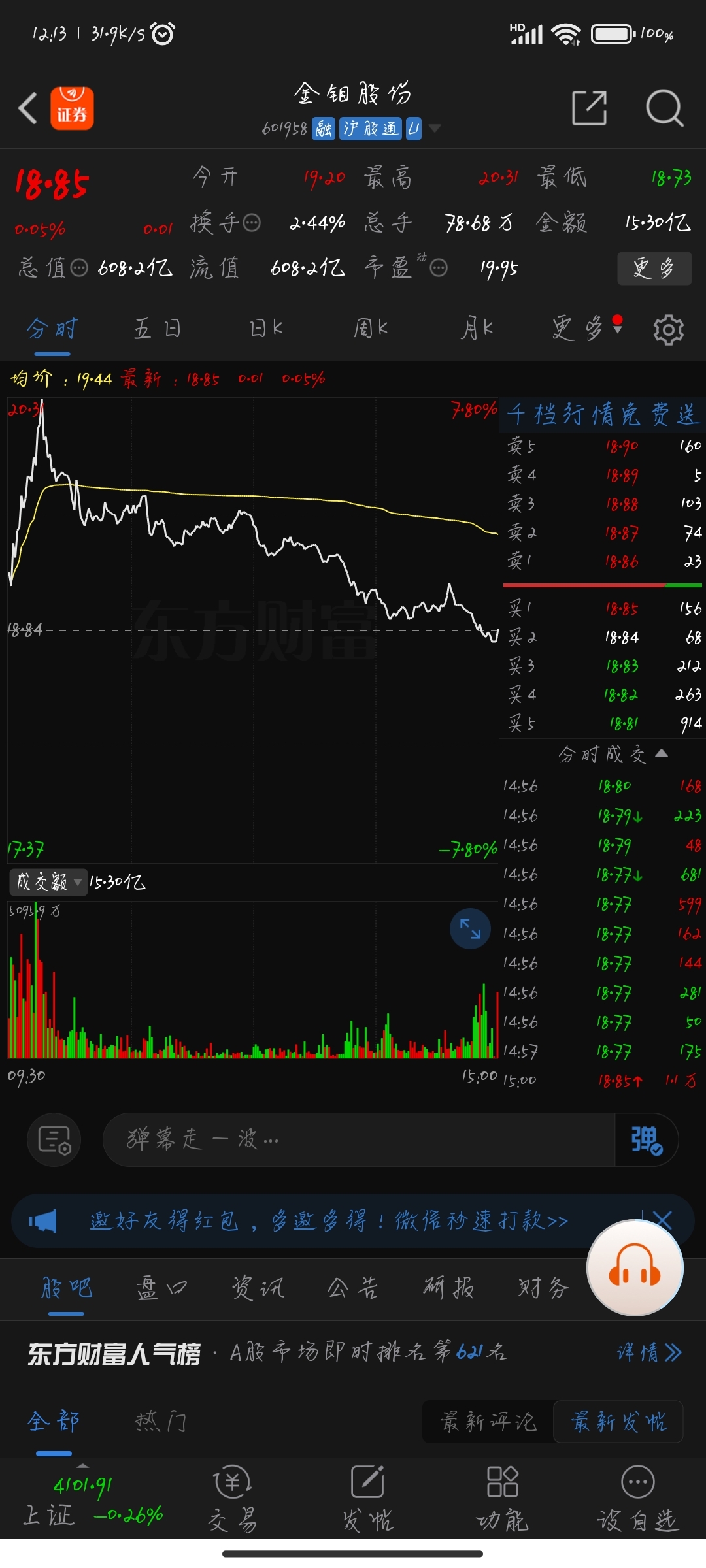 $金钼股份(SH601958)$ 这股,这个小利好,周一能不能涨哦?看周五的走势,大卖空砖都已经走了!如果要是收高的话,100%涨!
