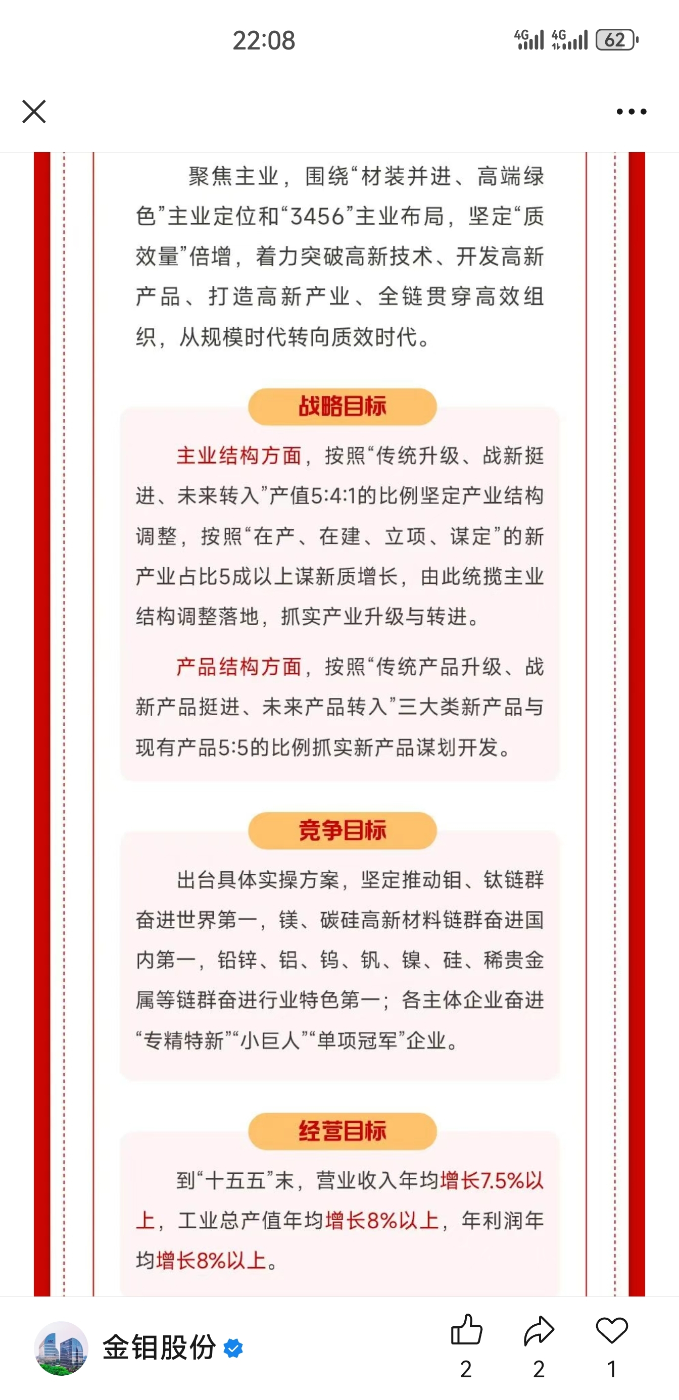 $金钼股份(SH601958)$ 短期就是看资金和情绪了,说点长远一点点的,有人关注到这个表述吗?钼、钛链群世界第一,实操方案。虽然是陕西有色关于155的说明,但是具体方案一般都会在第一年出台。陕西有色旗下主要就金堆城和宝钛。