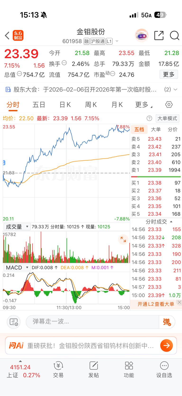 $金钼股份(SH601958)$ 卖飞,好难过,开盘被吓跑了,21.3 的时候准备接回来但是没下去手。#炒股日记#