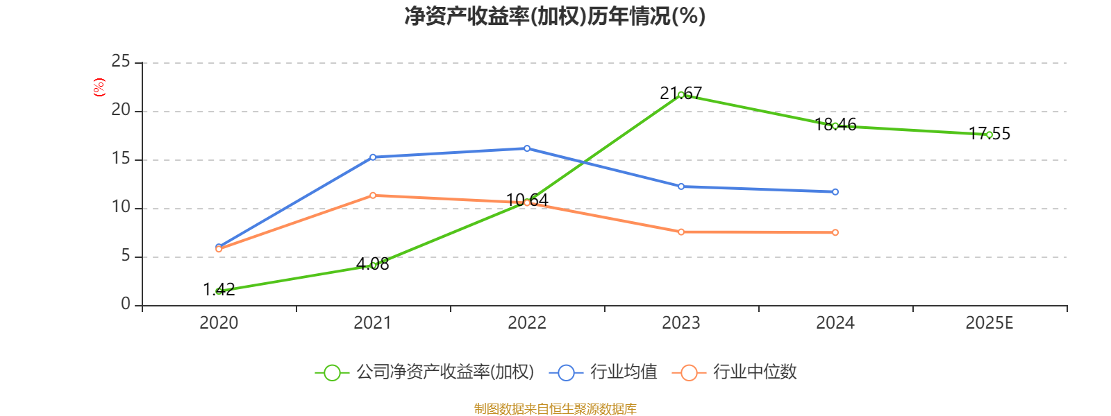 数据显示,2025年公司加权平均净资产收益率为17.55%,较上年同期下降0.91个百分点。