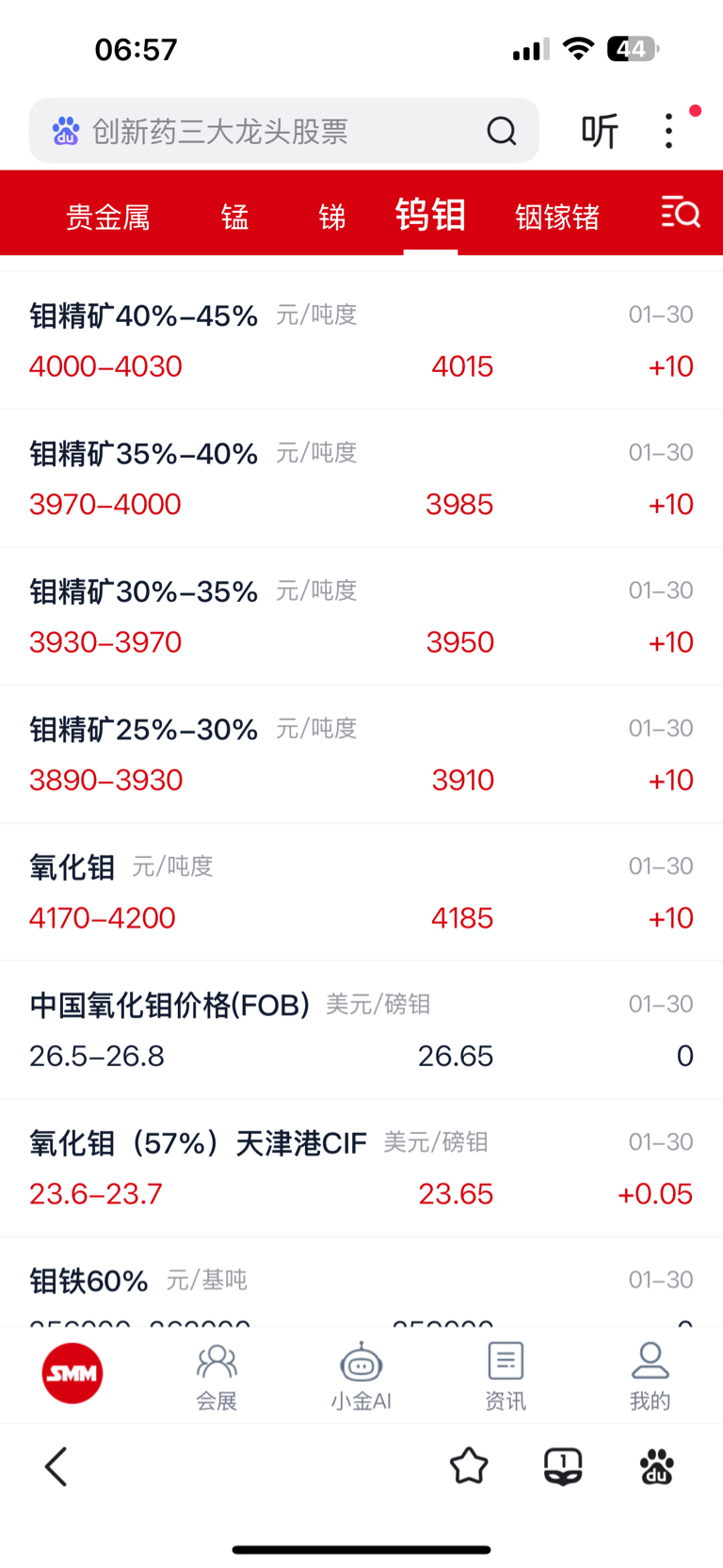 $金钼股份(SH601958)$ 昨天国内钼期货价格稳定,部分小涨,数据可查