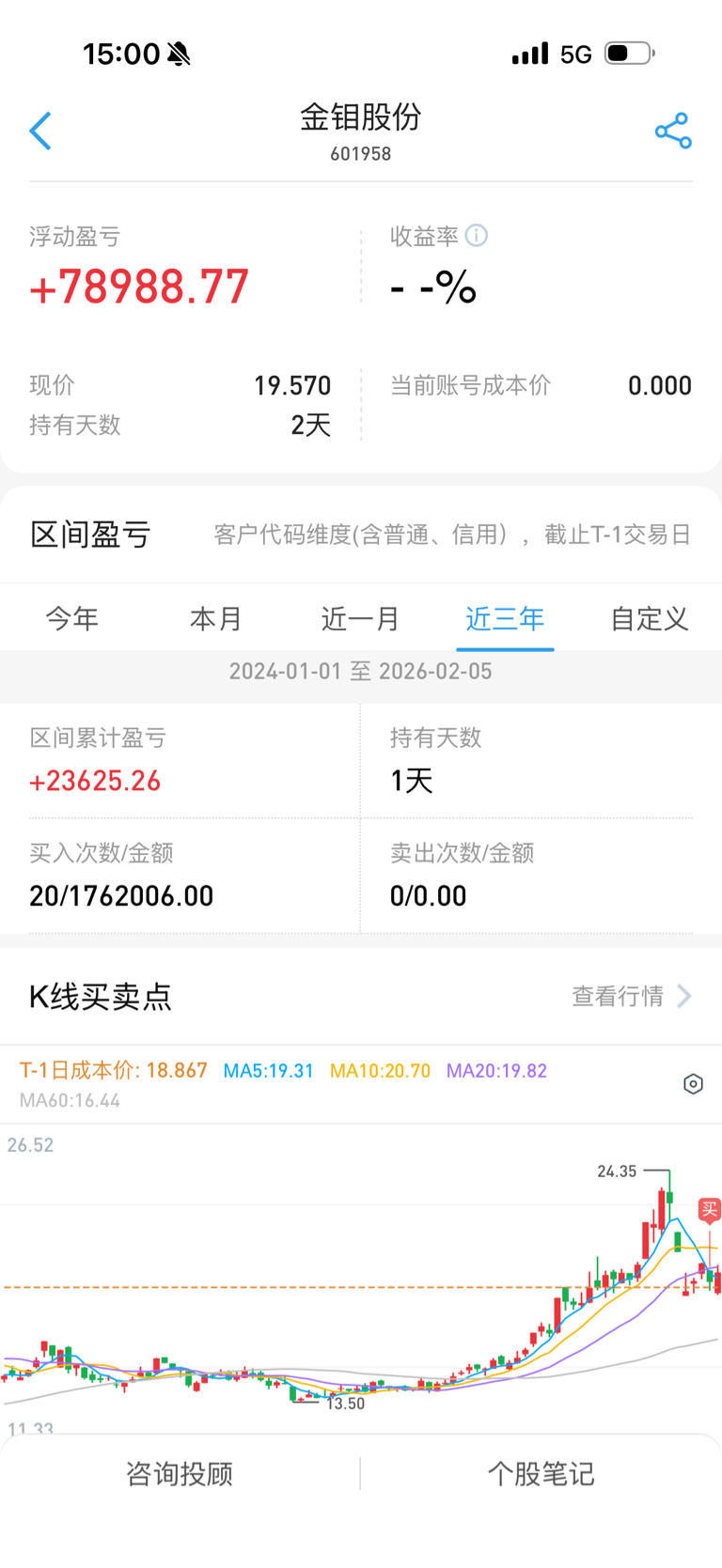 $金钼股份(SH601958)$ 昨天买的,今天卖了。