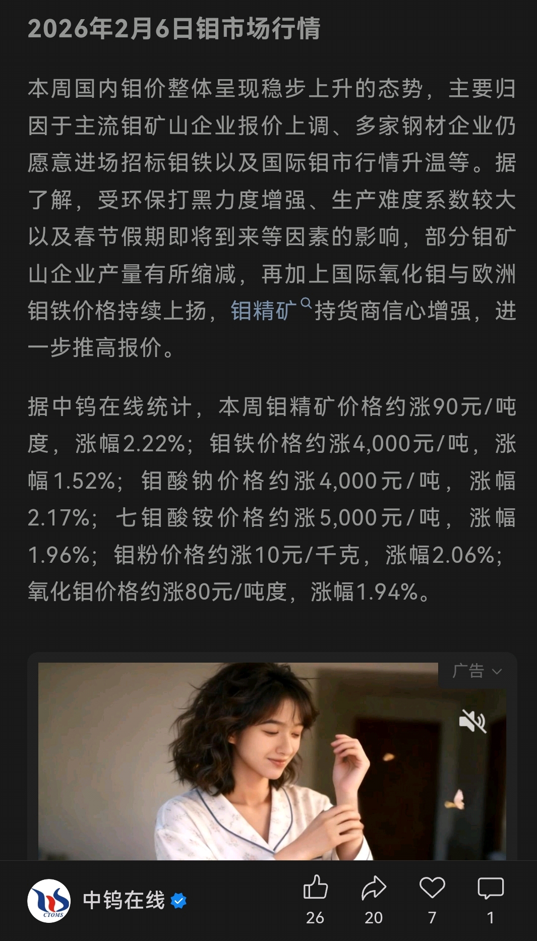 转自中钨在线(公众号),在钨突破关键价位的同时,钼行情也持续升温。
