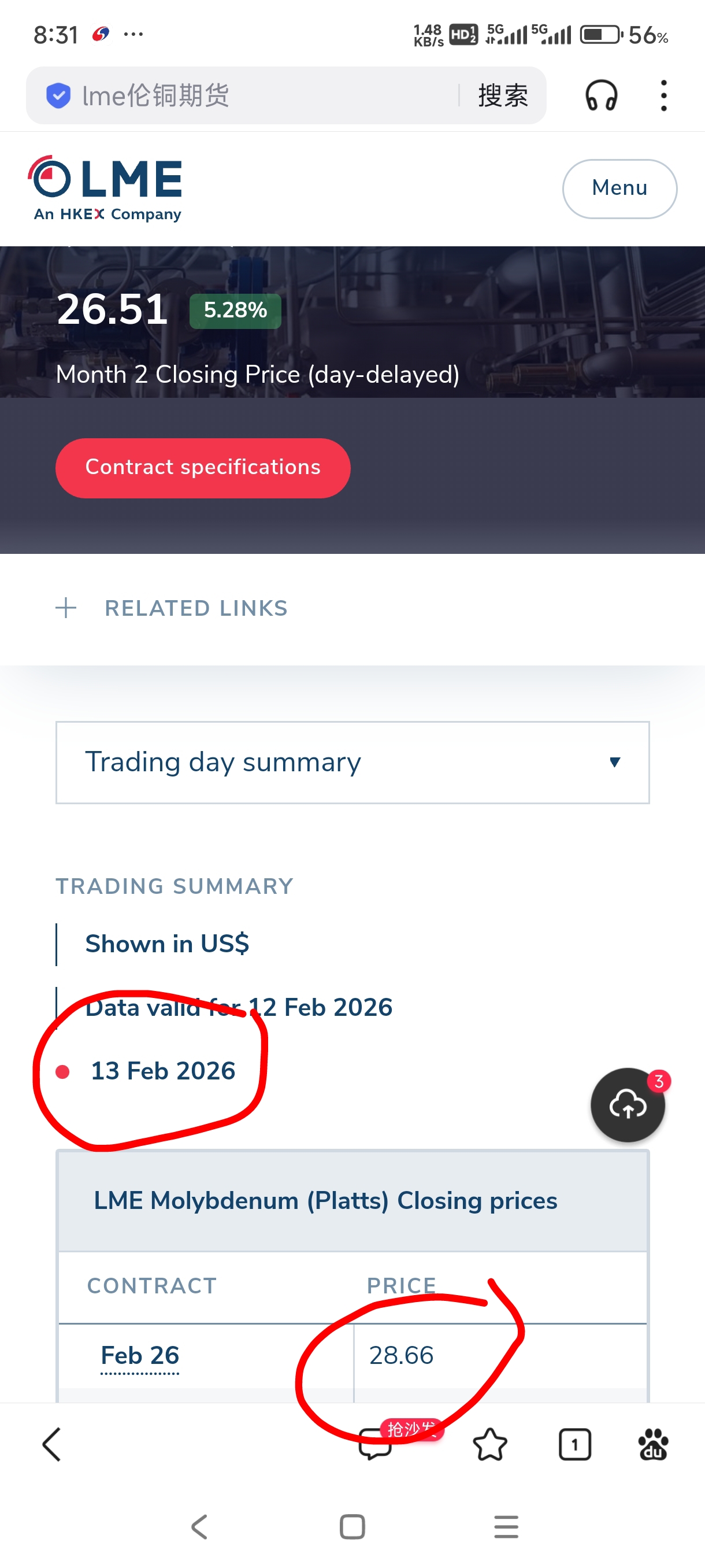 国际钼13号暴涨破去年9月25.96元高点,且向28.66元挺进,昨晚金银大跌只