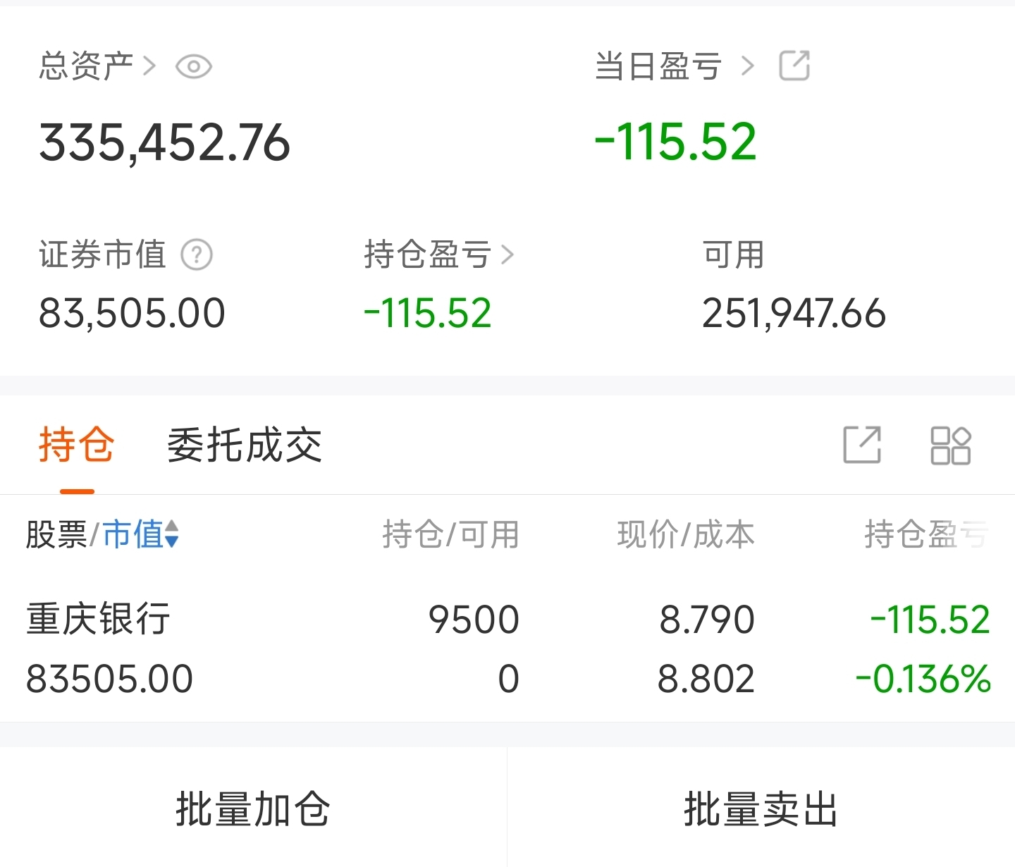 $重庆银行(SH601963)$ 8.8买了快1万股,不知道是对是错!