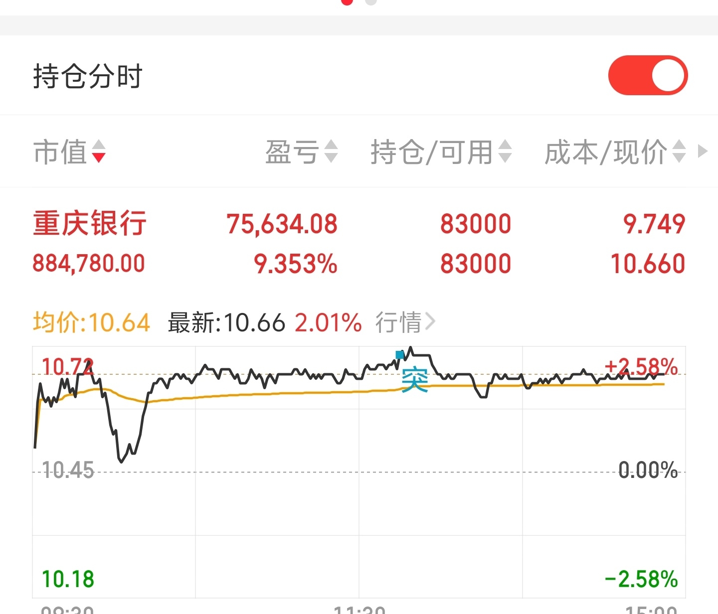 $重庆银行(SH601963)$ 从抄底最高亏8个点到今天盈利9个点,在所有人一路不看好唱衰的时候坚持抄底持有到今天终于得到回报,你们拿住了吗?