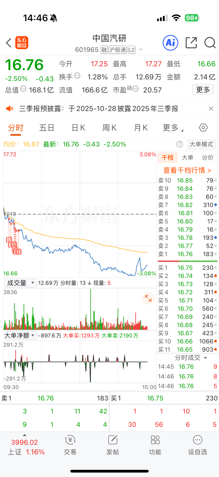 $中国汽研(SH601965)$ 一大早就补仓把子弹打完了,今天真的是郁闷