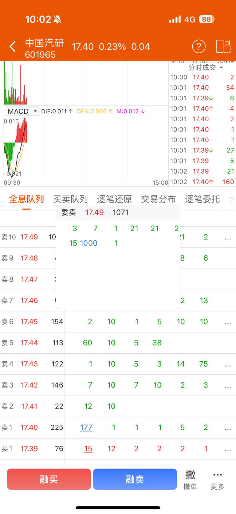 $中国汽研(SH601965)$ 这个17.49挂1000手的家伙,每天都挂在上面!